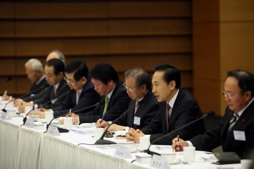 이 대통령은 "투자는 기업 스스로 판단하는 것이지 정부가 하라고 해서 투자를 하는 것은 아니라고 본다"면서 "기업이 상황을 잘 분석해 결정하겠지만 지금은 세계 경제가 회복되는 과정이기 때문에 여러분께서 그러한 판단을 할 것으로 안다"고 말했다.