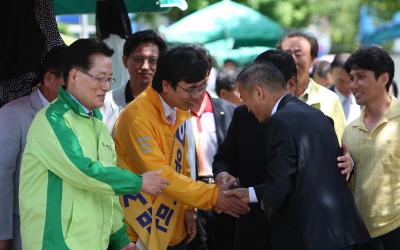 마을 주민들과는 일일이 악수를 나누며 도지사로 당선되면 지역 곳곳을 찾아다니며 현안을 직접 챙기겠다고 다짐했다. 한 주민이 "당선되면 안 올 거 아니냐"고 시큰둥하게 말했다. 유 후보는 손을 꼭 부여잡으며 "도지사로 당선되면 꼭 막걸리 먹으러 올게요"(웃음)라고 약속한 뒤 바쁜 걸음을 재촉했다.