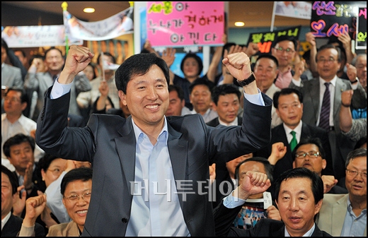 서울 시장에 당선된 한나라당 오세훈 후보가 3일 오전 서울 광화문 프레스센터 선거캠프에서 두 손을 번쩍 들어 승리를 만끽하고 있다. 독자들의 PICK! 아내 산후조리원에 있는데...'친구 여친'과 불륜 남편, 성폭행 고소전까지 사별한 정선희 "오열 사진 지워줘"...거절당하며 들은 말 '정신 번쩍' "김지원 아닌 줄" 파격 노출 드레스 입은 근황...팬들 걱정 박재현 16세연하 전처, 이혼 후 신내림...시모 "손녀, 무당딸 만들어"