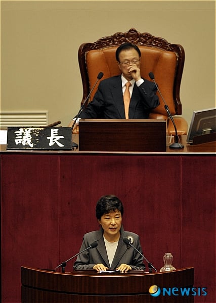 박 전 대표가 본회의 발언에 나선 것은 지난 2005년 4월 당시 당대표 자격으로 본회의 교섭단체 대표연설을 한 이후 5년2개월여 만이다.
