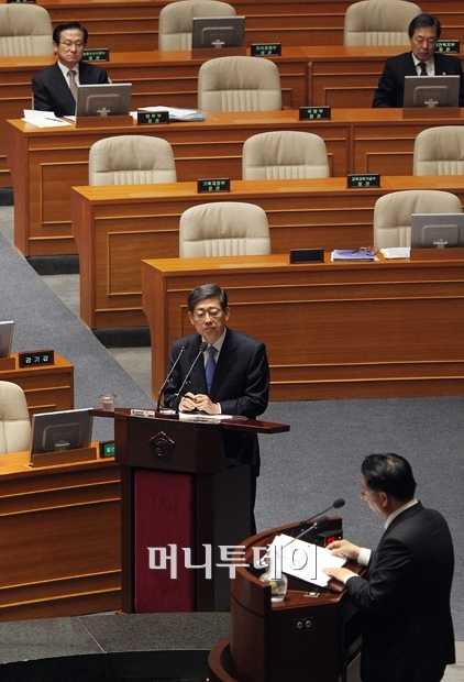 김황식 국무총리는 "수사 과정이나 수사 결론이나 의원의 충실한 의정 활동이 오해 받으면 안 된다"며 "검찰이 뇌물죄로 접근하면서 논의하는 것은 아니라고 이해하고 있다"고 답변했다.