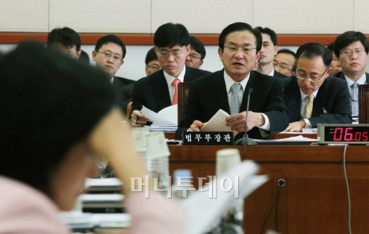 이귀남 법무부장관이 15일 오전 서울 여의도 국회에서 열린 법제사법위원회 전체회의에서 청목회 관련 수사에 대한 질의에 답하고 있다. 독자들의 PICK! "돈 안 줘서, 복수한다 생각"...정선희, 故안재환 실종 신고 안 한 이유 "모텔 여사장과 잤다" 아내가 불륜 중독...돈 받는 연하남=친아들 '맥가이버' 배한성, "치매 같아" 딸 말에 검사…안타까운 근황 동생에 '극약' 먹이고 학대한 언니…수십 년 뒤 연락해 "신장이식 좀"