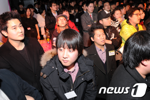 5일 서울 마포구 서교동 홍대클럽V홀에서 열린 민주통합당 청년비례대표후보자들의 락 파티(Rock Party) 참석한 이준석 새누리당 비상대책위원이 민주통합당 청년비례대표후보자와 이야기를 나누고 있다. 민주통합당 청년비례대표후보자들과 다양한 정책에 대해 의견을 나눈 이 비상대책위원은 “새누리당도 쇄신작업 후에 20~30대를 차별없이 능력에 따라 등용할 계획”이라고 밝혔다.