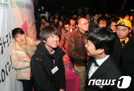 (서울=뉴스1) 이종덕 기자= 5일 서울 마포구 서교동 홍대클럽V홀에서 열린 민주통합당 청년비례대표후보자들의 락 파티(Rock Party) 참석한 이준석 새누리당 비상대책위원이 민주통합당 청년비례대표후보자와 이야기를 나누고 있다. 민주통합당 청년비례대표후보자들과 다양한 정책에 대해 의견을 나눈 이 비상대책위원은 “새누리당도 쇄신작업 후에 20~30대를 차별없이 능력에 따라 등용할 계획”이라고 밝혔다. <저작권자 뉴스1 코리아, 무단전재 및 재배포 금지> ☞ 뉴스1 바로가기 독자들의 PICK! "한국 맞아?"...남편 전처들과 한집살이 "너무 친해" 이혼 포기 '동서와 내연관계' 남편 의심한 아내, 결국 '친자확인' 검사…결과는? 온주완 "♥방민아와 5년 비밀연애?…"손잡고 다녔는데" '190억' 찍은 한남더힐, 옥주현이 최고가 매입했다..."100평 규모"