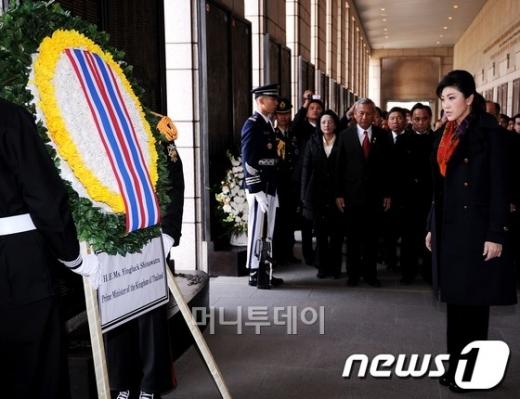 지난해 전 국토의 3분의 1이 홍수피해를 입었던 태국의 잉락 친나왓 총리는 이날 한국의 수자원 관리 시스템을 둘러보기 위해 서울 서초구 한강홍수통제소 상황실과 경기도 여주군 한강 이포보를 잇따라 방문했다. 특히 이포보에서는 4대강 사업의 홍수예방 효과를 살펴봤다. 태국 사상 최초의 여성 총리인 잉락 총리는 26일에는 이화여대에서 '여성 리더십 : 태국 총리의 비전'을 주제로 강연도 한다.