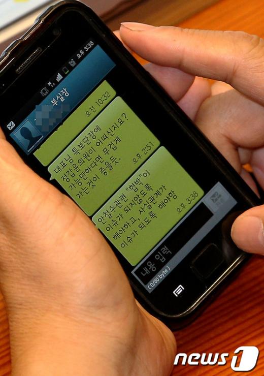뉴스1 사진 취재진에게 단독 포착된 황 대표의 문자 메시지는 측근인 대표실 부실장에게 온 것으로 "안철수관련 '협박'이 이슈가 되지 않도록 해야하고, 사실관계가 이슈가 되도록 해야함"이라는 내용이 적혀있다.