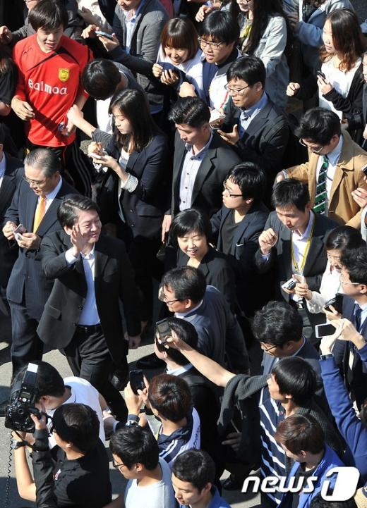 안철수 무소속 대선 후보가 25일 지지자들과의 즉석 만남, 이른바 '번개'를 직접 제안했다.