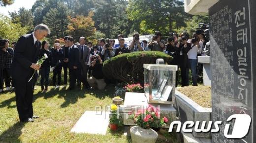 문 후보는 전태일 열사와 전 열사의 어머니 이소선 여사, 문익환 목사, 조영래 변호사 등의 묘역을 잇달아 참배했다.