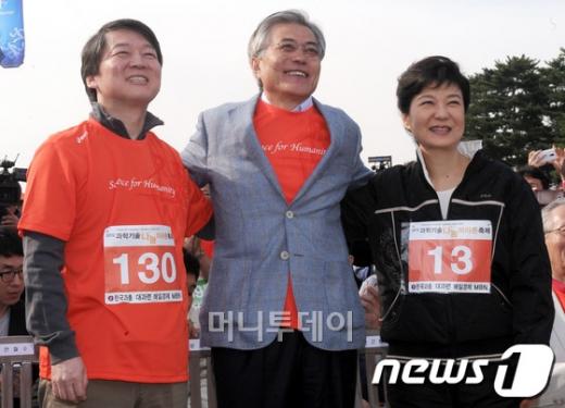 박 후보는 지난주보다 0.3%포인트 상승한 반면 안 후보는 3.2%포인트 하락했다. 문 후보는 지난주보다 2.8%포인트가 상승했다. 이에 따라 안 후보와 문 후보의 격차는 0.5%포인트 차로 좁혀졌다.