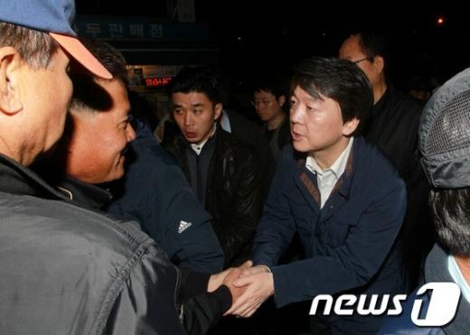 안 후보는 이날 오전 경기 성남 수진리고개 새벽 인력시장에서 '철수가 간다2탄'으로 일용직 건설노동자들과 만나 "선거 때만 정치인이 인사하고 선거 지나면 아무도 오지 않는 다는 말 듣고 가슴이 아팠다"며 이 같이 밝혔다.