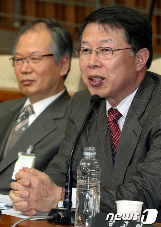 (서울=뉴스1) 박정호 기자 = 22일 오전 국회에서 열린 이동흡 헌법재판소장 후보자 인사청문회에 참고인으로 출석한 심경수 충남대 법학전문대학원 교수가 의원들의 질의에 답하고 있다. 2013.1.22/뉴스1 <저작권자 뉴스1 코리아, 무단전재 및 재배포 금지> ☞ 뉴스1 바로가기 독자들의 PICK! "총각인 줄 알고 결혼" 빚더미 남편, 전처·자식 숨겼다...아내 충격 벌써 새 연인을 만나?...전남친 환승연애에 불법촬영물 복수 암 투병 아내 버리고 '딸 친구'와 재혼…유명 축구해설가 사생활 논란 임신 소식에 "딴 X이랑 잤냐" 폭언한 남편…알고 보니 무정자증