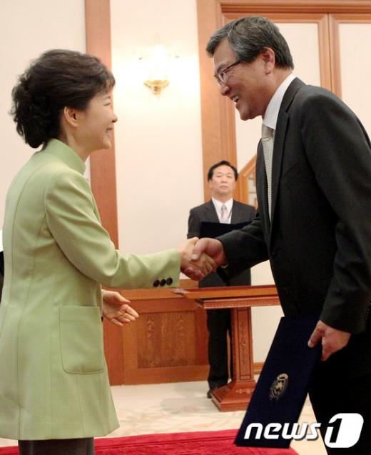 (서울=뉴스1) 박철중 기자 = 박근혜 대통령이 17일 오전 청와대에서 최문기 미래창조과학부 장관에게 임명장을 수여하고 있다. (문화체육관광부 제공) 2013.4.17/뉴스1 <저작권자 뉴스1 코리아, 무단전재 및 재배포 금지> ☞ 뉴스1 바로가기 독자들의 PICK! 허니문 베이비 '출생의 비밀'...결혼 직전 전남친 만난 아내 소유, 임영웅과 '제주도 열애설' 전말 공개 '음주 뺑소니' 김호중, 옥중 50억 돈방석?…지분가치 '반전' 남편 방에 정력제..."아들아, 인생 즐겨" 불륜 응원한 시모