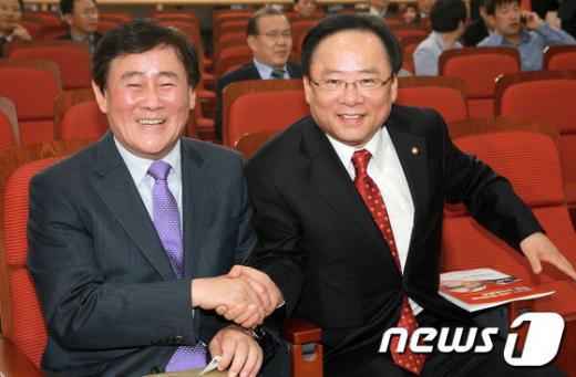 남 의원은 "여기 계신 분들 중에 다음번 차기 원내대표가 나올게 확실하다"면서 "(토론회에 참석하는 게)차기 선거운동 방식인 것 같다"고 농담을 건네기도 했다. 두 의원 모두 웃으며 "확실합니다"라고 화답했다.