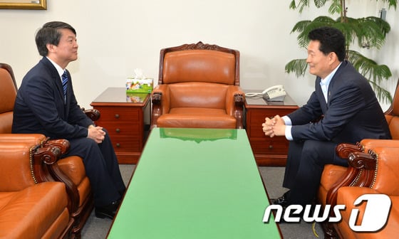 (서울=뉴스1) 박세연 기자 = (서울=뉴스1) 박세연 기자 안철수 새정치민주연합 공동대표가 20일 여의도 국회 당대표실을 방문한 송영길 인천시장과 대화하고 있다. 2014.6.20/뉴스1 <저작권자 뉴스1 코리아, 무단전재 및 재배포 금지> 독자들의 PICK! "아내에 남편·딸 있었다" 결혼 후 충격...더 놀라운 진실 김신영, 8년 열애 끝 결별 고백…"전남친 어머니와는 계속 연락" '14살 차이' 배성재·김다영, 결혼 1년 만에 위기? "밤마다..." "맨날 씨뿌리고 다녀" 박정수, 75세에 늦둥이 본 김용건 '일침'