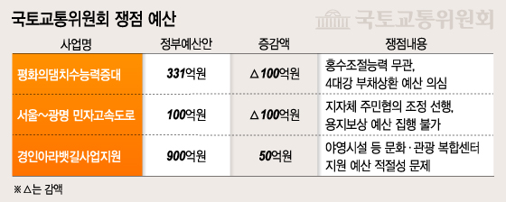 ◇사회갈등 조정, 부처 편의주의 제동 역할도=지역예산 챙기기가 만연한 국토위지만 오히려 지역 민심을 다독이기 위한 예산 삭감 경쟁이 벌어진 사업도 있었다.