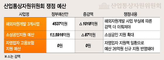 산업부 소관에서는 5868억원을 증액하고 1437억원을 감액했다. 중소기업청은 2128억원을 증액하고 217억원을 감액했다. 특허청은 증액과 감액이 동일했다.