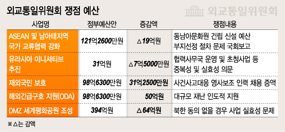 아울러 아세안 및 남아태지역 국가 교류협력 강화를 위해 추진한 동남아 문화원 건립 예산은 19억원이 감액됐다.