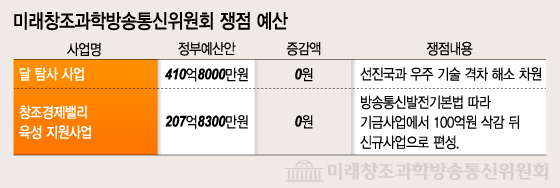 미래창조과학부는 기재부가 전액 삭감한 '달탐사' 사업을 미래창조과학방송통신위원회로 다시 들고와 410억8000만원을 반영했다.
