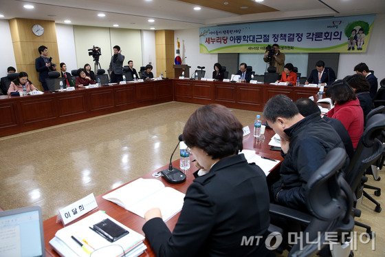 새누리당 아동학대근절특별위원회는 23일 국회 의원회관에서 관련 전문가 및 보건복지부 등 정부부처와 '아동학대 근절 정책결정 각론회의'을 열고 아동학대 근절 및 안심보육 관련 정책에 대한 2월 입법과제 특위안을 마련했다.
