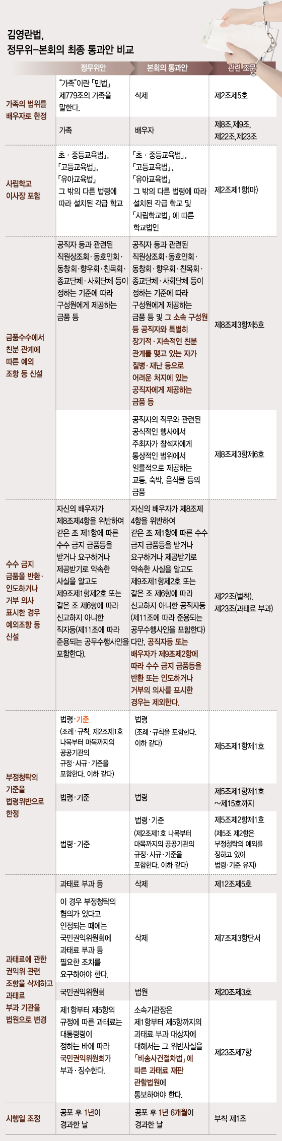 법안이 국회 본회의를 통과하자 언론은 뒤늦게 벌떼처럼 법안의 모호성, 위헌, 과잉입법의 문제를 지적하고 나섰다. 하지만 김 전 위원장이 당초 제안했던 입법예고안이나 권익위가 국회에 제출한 법안은 훨씬 더 많은 논란거리를 안고 있었다.
