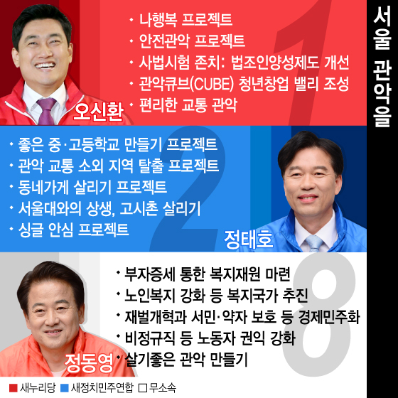 4·29 재보선이 하루 앞으로 다가왔다. 유권자는 후보들의 공약을 살피고, 실현 가능성을 따져 적임자를 가려내는 혜안이 필요한 시점이다. 선거구 4곳에 출마한 후보들의 핵심공약을 카드뉴스로 정리했다. 독자들의 PICK! 오지헌, 시니어 모델 아버지 공개…'전원일기' 이상미와 소개팅 사별한 정선희 "오열 사진 지워줘"...거절당하며 들은 말 '정신 번쩍' 전지현 시모, BTS에 "10년 지나도 영어 못하는 애들" "이휘재 4년만 복귀, 쌍둥이 국제학교 입학 노렸다?"