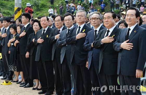 이날 추도식에는 김무성 새누리당 대표와 문재인 새정치민주연합 대표, 천호선 정의당 대표가 나란히 참석한다. 봉하마을에서 열리는 공식 추도식에 여·야 대표가 동시에 참석하는 것은 이번이 처음이다.