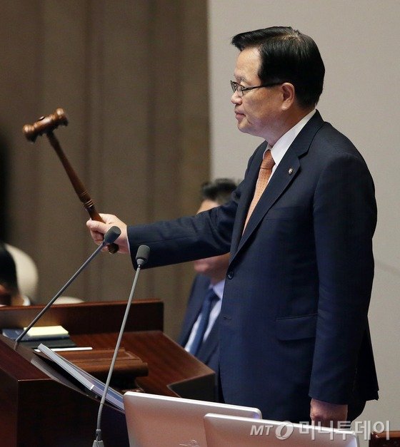 정 의장은 여당 내부에서 거부권 행사시 재의를 하지 않겠다는 기류가 강한 것에 대해선 "거부권을 행사할 때 같이 오는 이의서를 보고 판단해야 한다"며 "재의에 과반수 출석에 3분의 2 찬성이 필요한데 여당 의원이 안들어오면 투표가 성립되지 않는다"고 밝혔다.