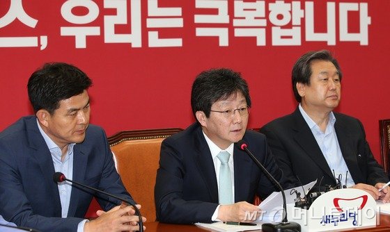 그는 "메르스에 따른 경제 침체를 우려하고 경제 불씨를 살리는데 정부가 최선을 다해야 한다"며 6.25 65주년을 맞아 "새누리당도 강한 안보 정당에 최우선 방점을 두고 제 역할을 다하겠다"고만 말했다.