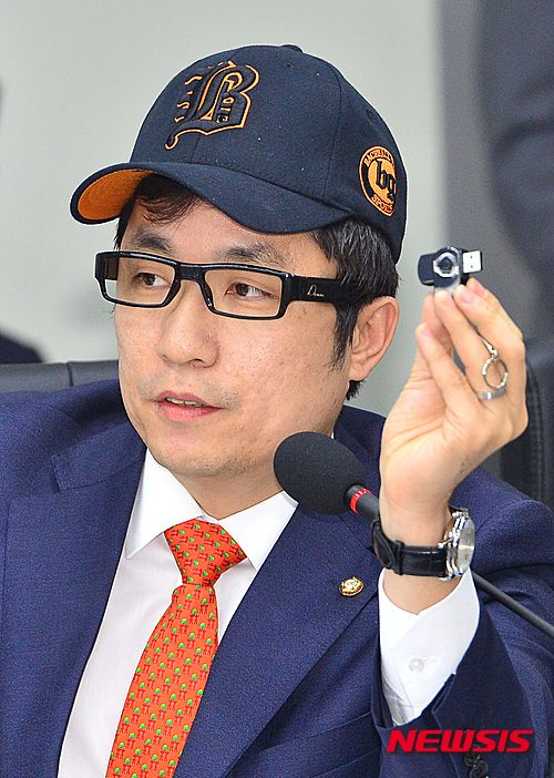 앞서 김상민 새누리당 의원도 몰카를 숨긴 모자를 정무위 국감장에 쓰고 나와 추경호 국무조정실장에게 몰카의 위험성을 경고했다. 이날 김 의원은 모자와 안경, USB 형태의 몰카를 직접 착용한 채 질의를 진행했다.
