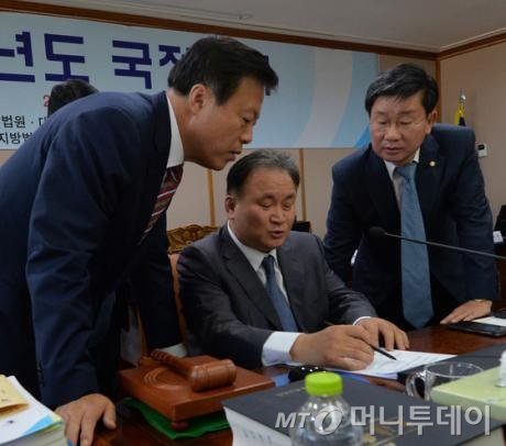 김 의원은 "어제는 감사원 사무총장 오늘은 성완종 리스트에 대해 질의가 나오는데 정책질의가 안 되고 특정 사건과 인물에 대한 질의가 계속 되는 게 맞는거냐"고 말했다. 같은 당 노철래 의원도 "정책감사는 내실을 기해야 하는데 대전 와서 꼭 할 필요있냐"며 "필요하면 대검찰청 국감에서 하는 게 낫다"고 제안했다.