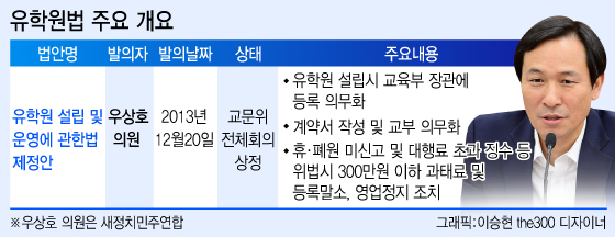 17일 교문위에 따르면 우상호 새정치민주연합 의원은 지난 2013년 12월 유학원업에 대한 법적 근거를 담은 '유학원의 설립 및 운영에 관한 법(이하 유학원법)' 제정안을 대표발의 했다.