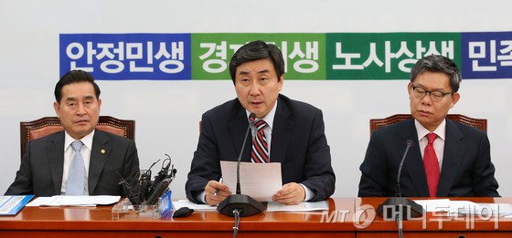 이 원내수석은 새누리당의 '정쟁 국감' 지적에 대해 "새누리당은 왜 최 부총리의 인사청탁 의혹과, 고위공직자들이 군대를 포기하는 실태에 대해 입을 닫고 있나"고 반문하며 "노사정 합의 내용에 없는 것까지 넣어 노동법 추진을 하는 게 잘 하는 것인가. 국정교과사 등 반헌법적 행태를 비판하는게 정쟁인가"라고 맞섰다.