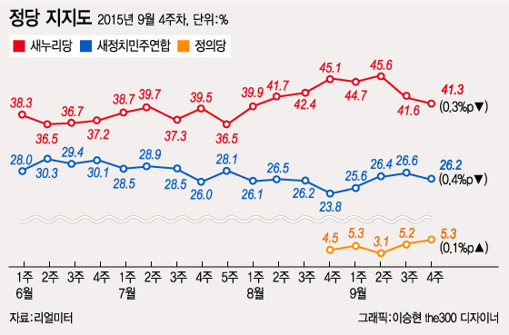 [the300] '공천 룰 갈등' 새누리·새정치 지지율 동반 하락