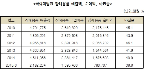 마진율이 가장 높은 곳은 경상대병원(56.7%)이었고, 가장 낮은 곳은 전남대(7.8%)였다.