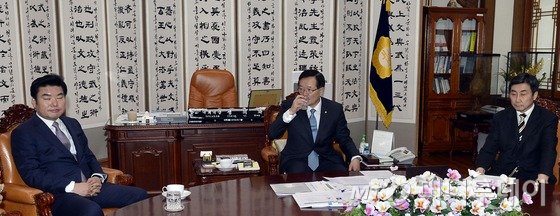 정 의장은 이날 오후 3시30분 김무성 새누리당 대표, 김종인 더불어민주당 비상대책위원장과 만나 쟁점 타결을 중재한다. 지난주 국회 통과가 막판 무산된 기업활력제고특별법(원샷법), 북한인권법 외 노동개혁 관련 법안도 여야 협상에 포함될지가 주목된다.