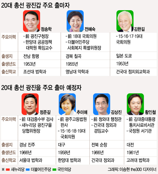 구의·강변역 등 2호선 라인 주변의 아파트촌 중심 광진을은 그동안 현역인 추미애 더불어민주당 의원의 독무대였다.