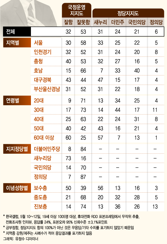 이들 지역, 계층의 대통령 지지도와 정당지지도를 한 번 살펴보자.