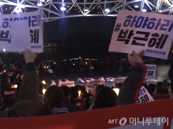 5일 저녁 세종시 정부청사 인근 호수공원 무대섬에서 열린 국정농단 규탄 촛불집회에는 직장인과 주부, 학생 등 주최측 추산 1200여명의 시민들이 모여 "박대통령 퇴진" 등 구호를 외치며 촛불문화제를 진행했다.