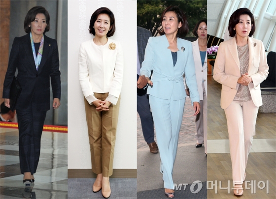 나 의원은 바지 정장을 즐겨 입는 편이다. 남성 위주의 정치판에서 페미닌한 무드를 낮추고 강하고 카리스마 넘치는 이미지를 구축하기 위함으로 보인다.