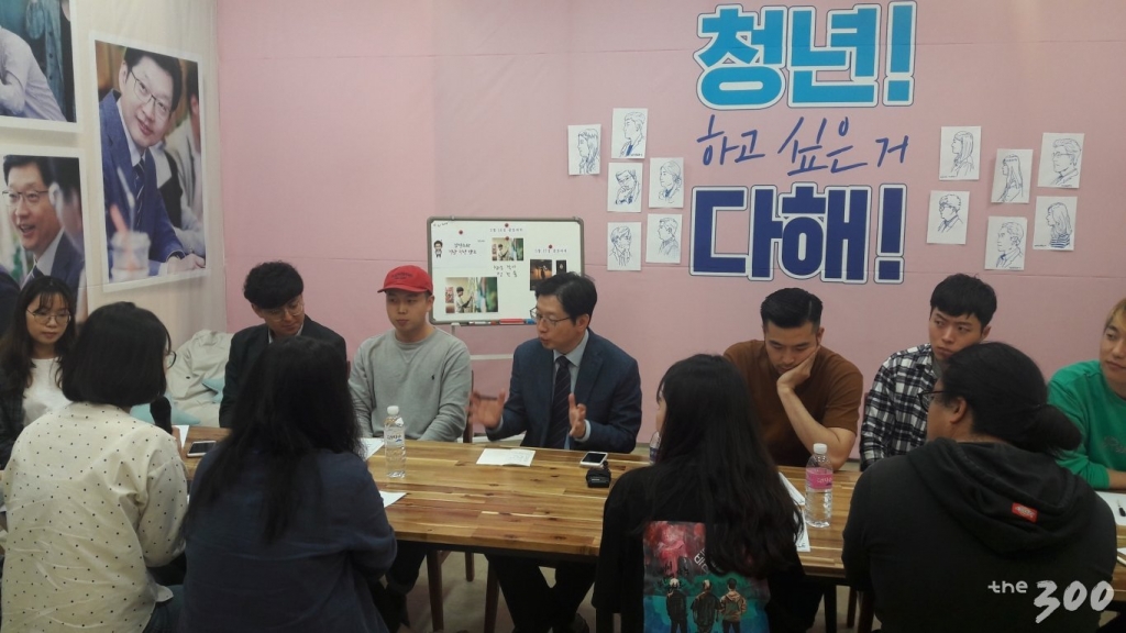 지난 16일 오후 굵은 빗줄기 속에도 경남 창원시 의창구 STX빌딩 김경수캠프에 20대 청년들의 발길이 이어졌다. 한눈에 봐도 개성 강한 이들이다. 경남 지역에서 문화예술 활동을 하는 청년들이었다. 김경수는 캠프 1층에 청년들을 위한 공간을 마련해 문을 활짝 열었다. 그 자리에서 간담회가 열렸다. 참석자가 20명이 넘었지만 김경수는 일일이 소개를 부탁했다. 세심했다. 그리고 그들의 이야기를 경청했다. 다양한 건의와 요구, 아이디어들이 쏟아졌다.