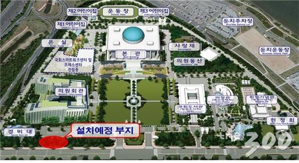 여러 대안을 비교한 결과 국회 헌정회 쪽 부지가 '초안'으로 정해졌다. 국회 정문 입구 기준 오른쪽 구석에 위치한 헌정회 주변은 국회 안에서 비교적 유동인구가 적은 편이다.