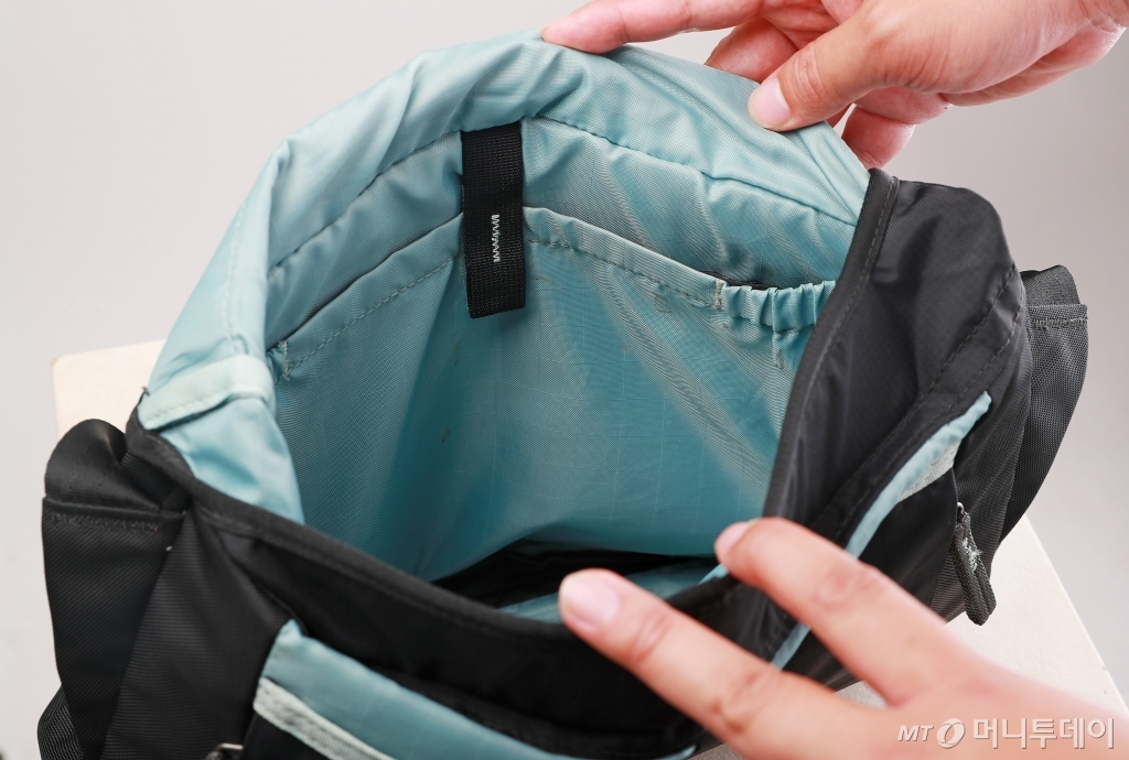 가방을 열면 밸크로가 부착된 속주머니가 나온다.