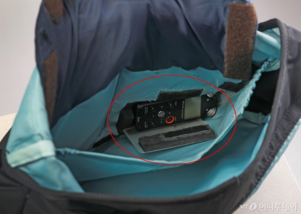 국정원이 지급한 녹음기가 들어갈 수 있는 공간이 있고, 녹음기 크기에 맞춰 밸크로가 붙어있다. 시중에 파는 제품이 아닌, 국정원이 직접 제작한 가방인 덕분에 녹음기 위장이 가능하다.