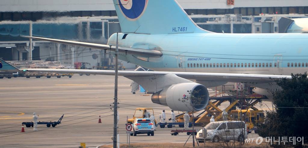 1일 외교부 등에 따르면 교민 이송을 위한 임시 항공기 KE9884편 보잉474 여객기가 이날 오전 5시18분(현지시간), 한국시간 6시18분께 우한톈혀국제공항에서 이륙해 오전8시12분께 김포공항에 착륙했다. 1차 전세기로 쓰인 대한항공 보잉 747-400 여객기가 방역 후 다시 투입됐다.