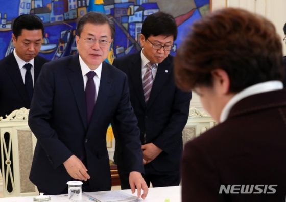 ![[서울=뉴시스]배훈식 기자 = 문재인 대통령이 19일 청와대 본관에서 열린 시·도 교육감 초청 간담회에 참석하고 있다., 오른쪽 뒷 모습은 최근 신종 코로나바이러스 감염증(코로나 19) 확진 환자가 다수 발생한 대구 강은희 교육감. 2020.02.19. dahora83@newsis.com](https://thumb.mt.co.kr/cdn-cgi/image/f=avif/21/2020/02/2020021911397614808_1.jpg)