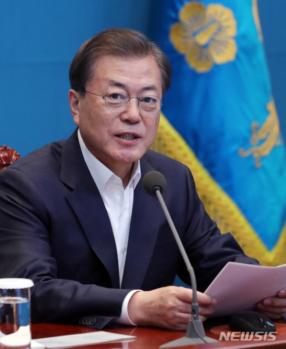 ![[서울=뉴시스]박영태 기자 = 문재인 대통령이 24일 청와대 여민관에서 열린 수석 보좌관회의에 참석해 모두발언을 하고 있다. 2020.02.24. since1999@newsis.com](https://thumb.mt.co.kr/cdn-cgi/image/f=avif/21/2020/02/2020022512187677362_1.jpg)