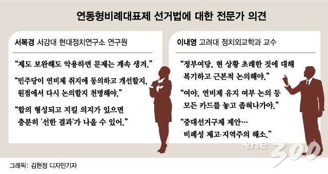 당초 구상대로 비례성 강화뿐 아니라 권역별 명부에 연동형 비례대표제가 잘 맞물려 돌아가도록 해야 한다. 또 지역주의 완화를 위한 작업이 절실하다. 이번 총선에서 지역주의로 회귀한 결과가 나온 만큼 이 부문에 초점을 맞춰야한다. 무엇보다 위성정당 창당을 차단하고, 정당득표율과 지역구 의석의 연동률을 높이는 등 원점에서 살펴야한다.