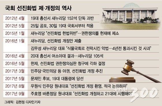 소선거구제의 지역구 의석수를 조정하는 것은 물론, 선거 방식 자체를 개편하는 논의가 시작된 이유다. 지역구와 비례대표 의석을 연동하는 ‘연동형 비례대표제’, 선거구를 통합해 1명 이상의 의원을 뽑는 ‘중대선거구제’, 아깝게 낙선한 의원을 구제하는 ‘석패율제’ 등이 논의 테이블에 올랐다.
