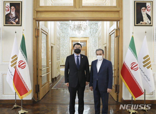 ![[테헤란=AP/뉴시스]이란 외무부가 공개한 사진에 최종건(왼쪽) 외교부 1차관이 압바스 아락치 이란 외무차관과 10일(현지시간) 테헤란에서 만나 회담에 앞서 포즈를 취하고 있다. 아락치 차관은 "한국 선박이 기름을 유출해 걸프만을 오염 시켜 억류된 것"이라며 "정치적이 아닌 기술적 사안"이라는 주장을 되풀이했다. 2021.01.11.](https://thumb.mt.co.kr/cdn-cgi/image/f=avif/21/2021/01/2021011308437664185_1.jpg)