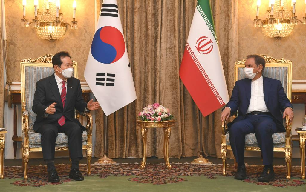 이어 "한국 정부는 이란의 핵합의 관련 당사국간 건설적인 대화의 진전을 측면 지원할 용의가 있다"며 "이란의 원화자금 문제 해결을 위해서도 이란을 포함한 관련국과 가능합 협력을 강화해 나가겠다"고 약속했다.